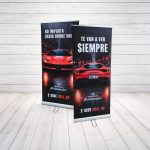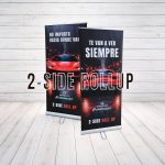 El 2-Side Roll Up incluye servicio de diseño gráfico básico, contemplando la adaptación de logo, textos e imágenes provistas por el cliente al formato 85×200 cm.