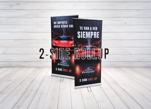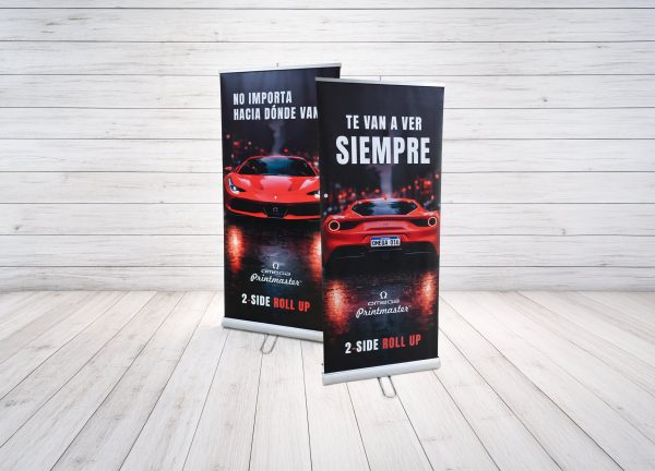 Impactá desde todos los ángulos. Nuestro 2-Side Roll Up es un exhibidor retráctil premium con gráfica en ambas caras, ideal para marcas que necesitan máxima visibilidad en entradas, pasillos, eventos, ferias y puntos de venta.